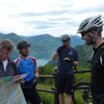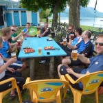 Am Ende des Forstweges gab es dann wieder den Gruppenzusammenschluss und es ging auf einer Strasse (unterbrochen von Abkürzern) weiter hinab in Richtung letztem Trail, der uns dann durch Wiesen und einige weitere Abkürzer zurück zum See brachte. Dort konnten wir noch einen Budenbesitzer überreden, uns allen ein Bier aufzuschenken, obwohl er noch geschlossen hatte. So klang die Tour gemütlich am Strand aus und wir konnten noch ein paar Kindern beim Fussballtennis zuschauen.