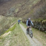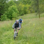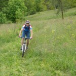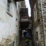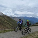 Kurz vor San Jorio war der Weg also zu Ende und auf dem Forstweg ging es zügig auf einem ruppigen Forstweg wieder zurück. Auf diesem trafen wir auf andere Biker, die wir zügig überholten, denn sie hatten mit dem (für sie) ungewohnten, losen, steinigen Untergrund Probleme so ihre Probleme. Sicheres Abfahren sah anders aus. Schon nach wenigen Metern konnten sie nur mehr unsere Staubwolke sehen.