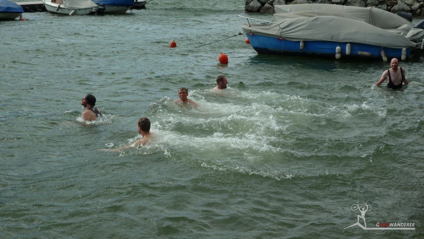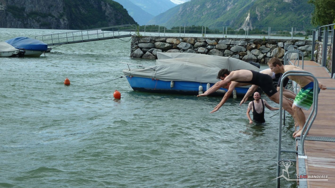 Am See angekommen, erfrischten wir uns nochmal mit einem Sprung in den kühlen See, dann machten wir uns wieder auf den Weg nach Innsbruck, nur unterbrochen von einem kurzen Abendessen in Chiavenna.
