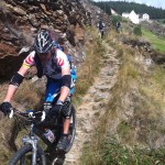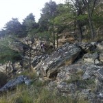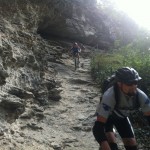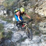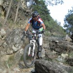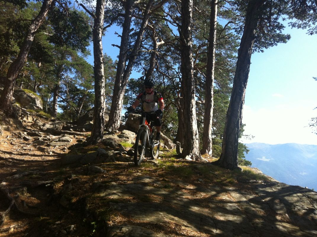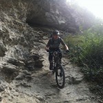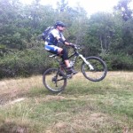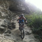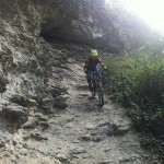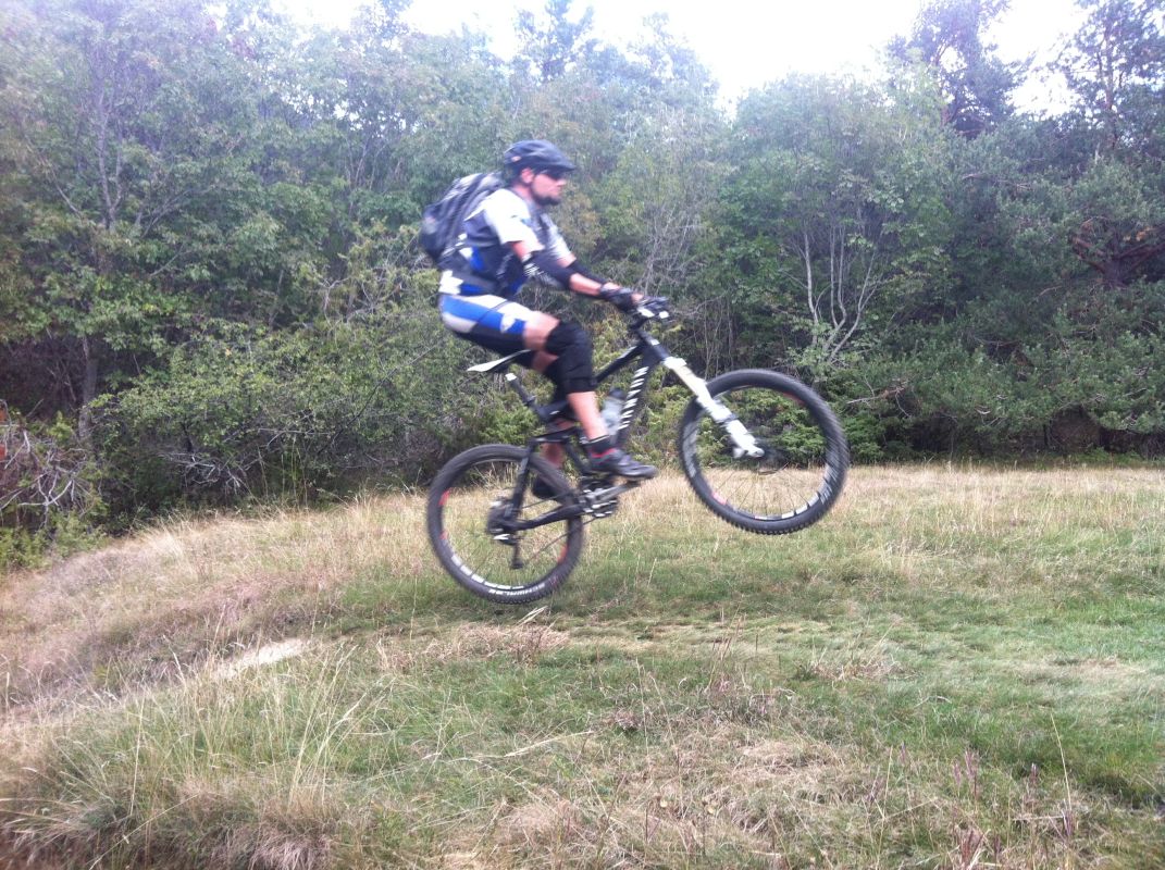 Mit vollen Mägen gings dann auf in Richtung Trails. Wir nahmen gleich die erste Abzweigung, was bedeutete, dass es der wohl schwierigste der angebotenen Trails werden würde. Das sollten wir auch gleich merken, denn schon nach wenigen Metern kam eine (für uns) unfahrbare Stelle. Also wurden die Bikes einfach kurz geschoben. Danach wurde der Trail aber umso flowiger. Das flowige im Trail führte dann aber zu einem kleinen Problem: die Tour war von Susi geplant, die Gruppe wurde aber von Ladi angeführt und dieser übersah gegen Mitte des Trails eine Abzweigung. Bis der Aufruf zum rechts abbiegen ganz nach vorn angekommen war, hatte Ladi schon einige Höhenmeter auf einem anderen Trail zurückgelegt und wir beschlossen dann einfach, unseren Weg in Richtung Tal auf diesem (offiziell ausgeschilderten) Trail fortzusetzen. Die Wahl war auch kein schlechte, nur vielleicht wäre der geplante Trail wohl technisch etwas schwieriger geworden. Dieser nun war zum größten Teil ausgefahren und flowig.
