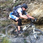 Der letzte Meter am Trail (wo eigentlich jegliche Schwierigkeit schon vorbei war) brauchte uns noch eine Panne ein: beim letzten Abbremsen, verrutschte der Mantel bei Christophs Vorderreifen und der schlauchlose Reifen war plötzlich auch luftlos. Die darauf folgende Aktion ging nicht ganz ohne Probleme und den Verlust von 2 CO2-Patronen von sich und endete damit, dass ein unglücklicher Christoph die letzten Meter mit einem Schlauchreifen zurücklegen musste. Der sich hier angestaute Frust musste natürlich noch mit einem Bier hinunter gespült werden, aber auch leider erwies es sich, dass wir bei der Wahl des Trails ein glücklicheres Händchen hatten als bei der Wahl der Bar (das Bier war eh gut, nur die Kellnerin im Lokal gegenüber sah besser aus). 😉