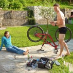 Nach einem kurzen Intermezzo auf von uns für die Abfahrt in der Regel gemiedenen öffentlichen Straße bogen wir in Sora wieder in einen Forstweg ein. Hier waren unsere Bikes zumindest wieder halbwegs in ihrem Element. Unsere Hoffnung, dass sich der Weg irgendwann vielleicht doch noch in einen Single-Trail verengen würde, erfüllte sich leider nicht (auf der Karte konnte man das nicht so genau erkennen), die Abfahrt, wenn auch technisch wenig herausfordern, machte uns aber trotzdem Spaß und wir konnten den Tag mit einem Lächeln im Gesicht und einem Radler in der Hand am Luganosee ausklingen lassen.