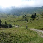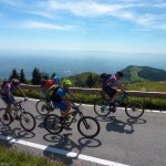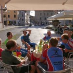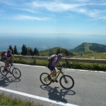 Aber bevor man einen Trail genießen kann, muss man zuerst den Aufstieg hinter sich bringen und so begannen wir den 1600hm langen Anstieg auf den Monte Grappa. Nach Erreichen des Monte Grappa sollten wir auch das Schlimmste hinter uns haben und bis auf einen kurzen Anstieg sollte es dann bis zurück nach Bassano nur mehr bergab gehen. Aber zunächst zog sich der Anstieg in die Länge und die sonnigen 1600hm zogen sich in die Länge. Wir alle waren froh, als das Schutzhaus Cima Grappa endlich in Sichtweite kam und noch viel froher, als dieses endlich auch erreicht war. Nachdem wir die Aussicht kurz genossen hatten, machten wir uns daran, einen Platz für das mehr als verdiente Mittagessen zu sichern.