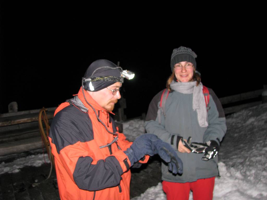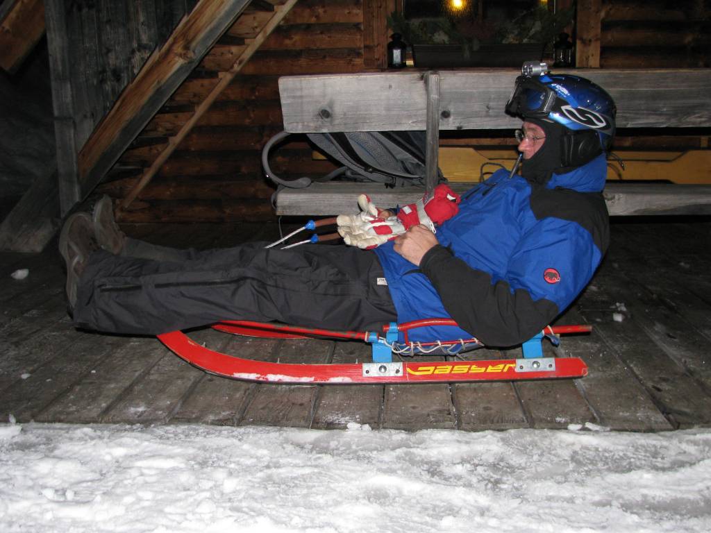 Ein weiterer Punkt, der (zumindest für mich) für die Wahl der Brandstatt Alm als Ziel des Rodelausflugs sprach war der, dass ich die Bahn noch nicht kannte. Also stiegen Christof, Brigitte, Thompson und Roland zu Martin ins Auto und wir machten uns auf den Weg ins Stubaital. Auf dem Weg dorthin rächte sich, dass wir kein Navi an Board hatten, denn fast hätten wir das Auto um beinahe 4km zu früh abgestellt. Das hätte eine lange Tragepassage gegeben. Ein kurzer Anruf (Handy sei dank) bei der Brandstatt Alm brachte uns aber auf den richtigen Weg (bzw. Parkplatz).
